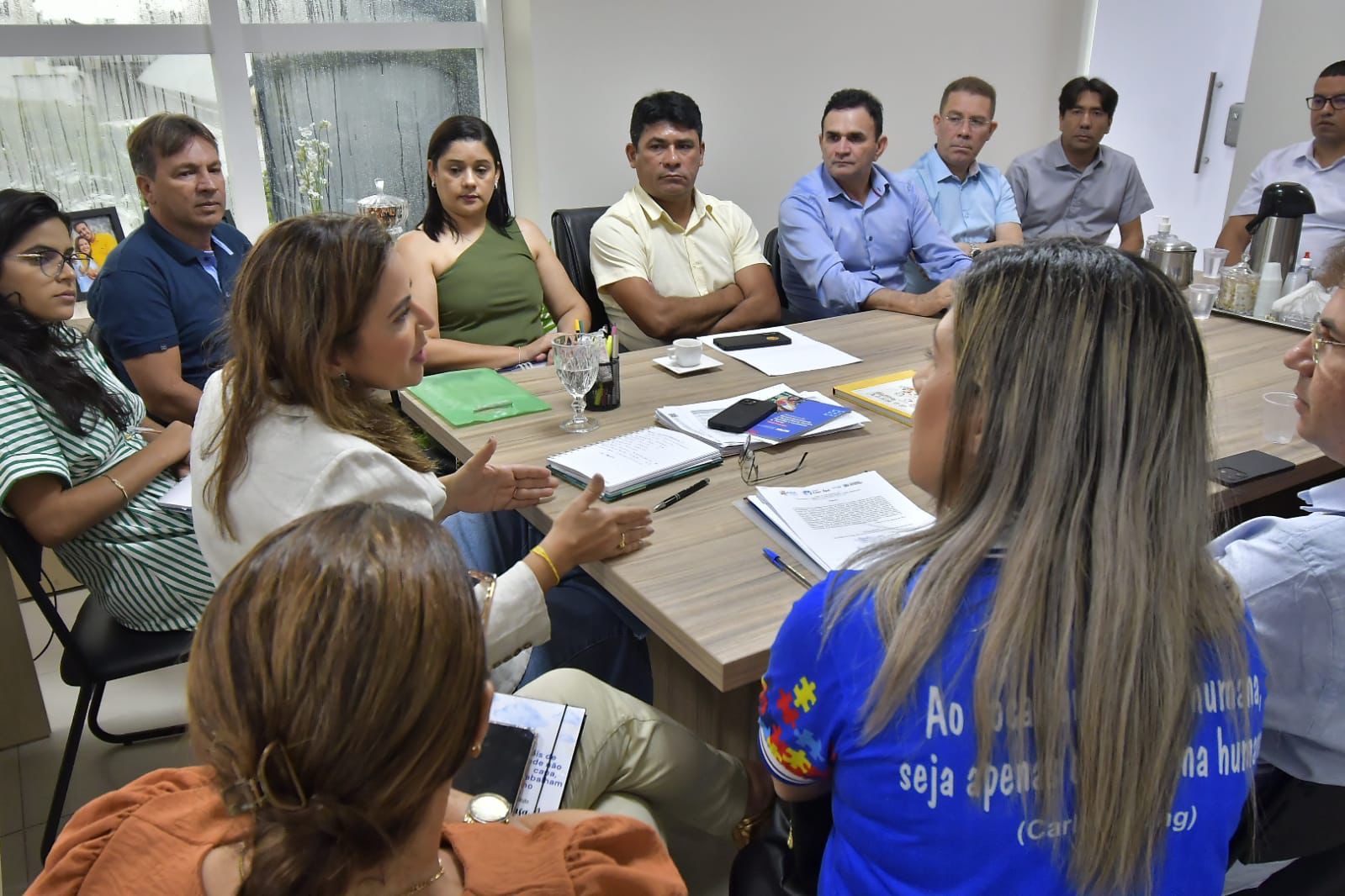 Visando ampliar os atendimentos no Instituto Casa Azul, Centro de Atendimento ao Autista (CAA) localizado no Brejo Paraibano, a secretária de Estado do Desenvolvimento Humano, Pollyanna Werton, se reuniu, nesta terça-feira (4), com os prefeitos e representantes dos municípios de Arara, Bananeiras, Belém, Borborema, Cacimba de Dentro, Casserengue, Dona Inês, Solânea e Serraria. A agenda objetivou a renovação do convênio e a ampliação da parceria com as cidades em prol da ampliação dos serviços. Cerca de R$ 789 mil reais serão investidos no espaço, por meio do convênio, e mais profissionais multidisciplinares serão enviados pelos municípios para garantia de ainda mais atenção nos atendimentos. O local atende crianças e jovens com o transtorno do espectro autista (TEA).